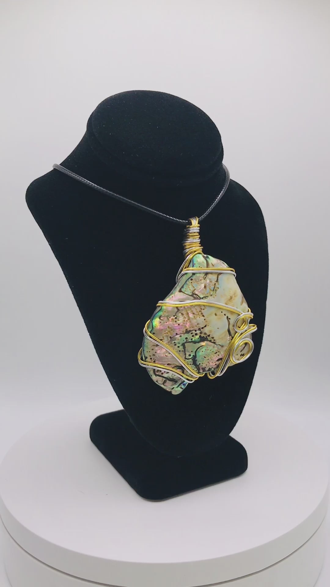 Abalone Pendant Silver Gold Large 2-2 1/2 inch