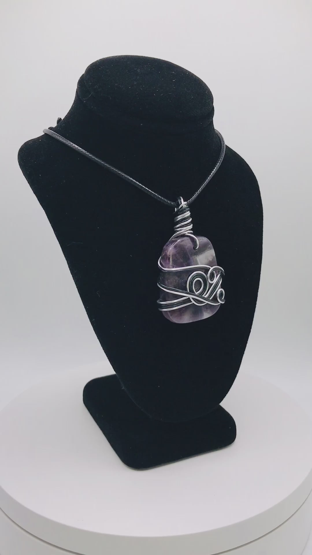 Amethyst Stone Purple Black and Silver Medium 1 1/2-2 inch Pendant
