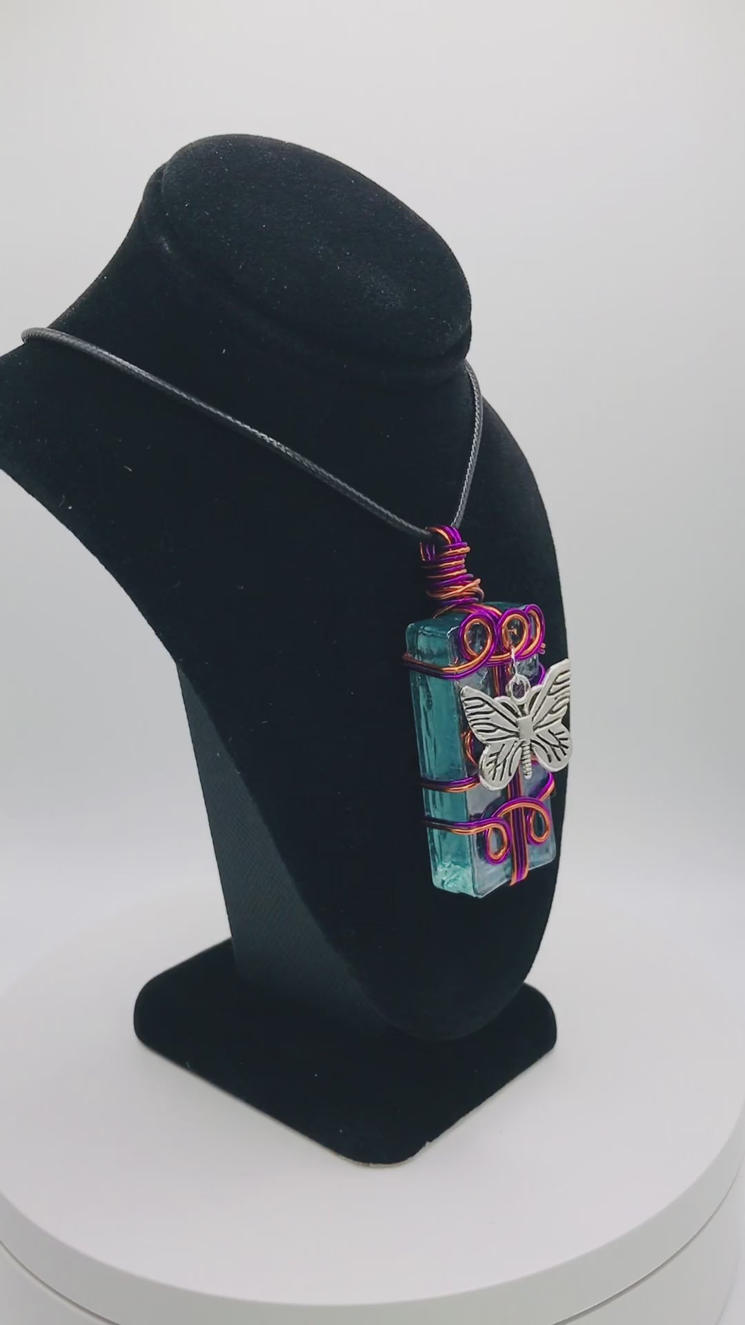 Artisan Glass Butterfly Light Blue Purple Orange and Silver Medium 1 1/2-2 inch Pendant