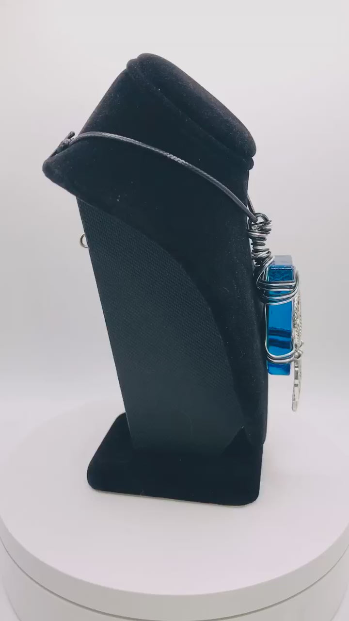 Artisan Glass Dreamcatcher Blue Silver and Black Extra Large 2+ inch Pendant