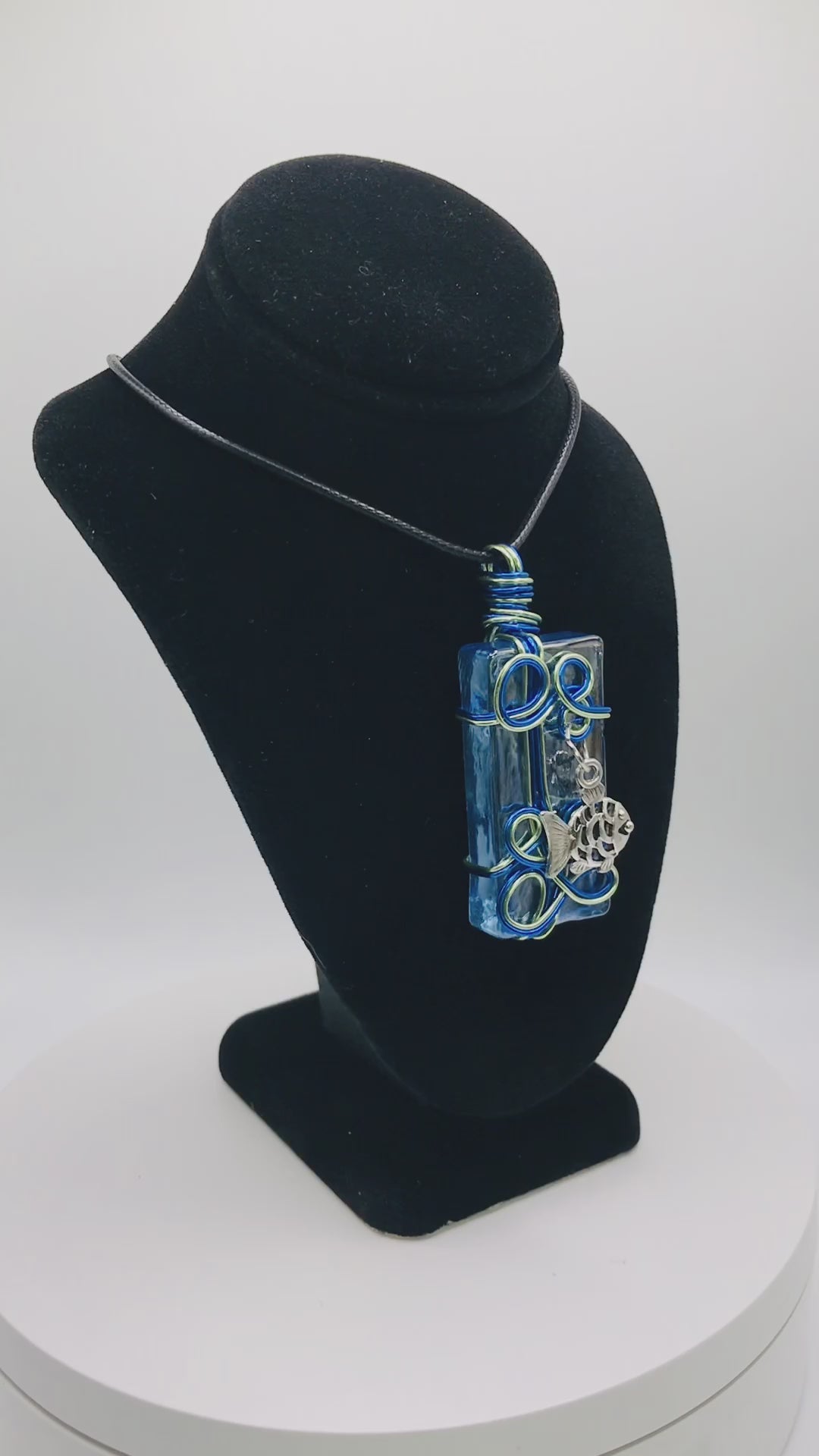 Artisan Glass Fish Light Blue Light Green Blue and Silver Medium 1 1/2-2 inch Pendant