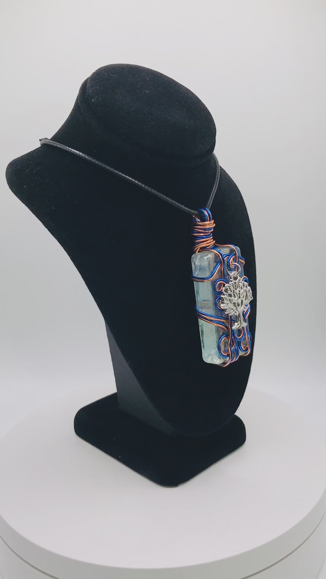Artisan Glass Tree Copper Blue and Silver Medium 1 1/2-2 inch Pendant