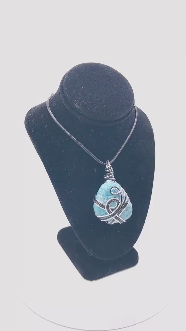Blue Apatite Stone Black and Silver Medium 1 1/2-2 inch Pendant