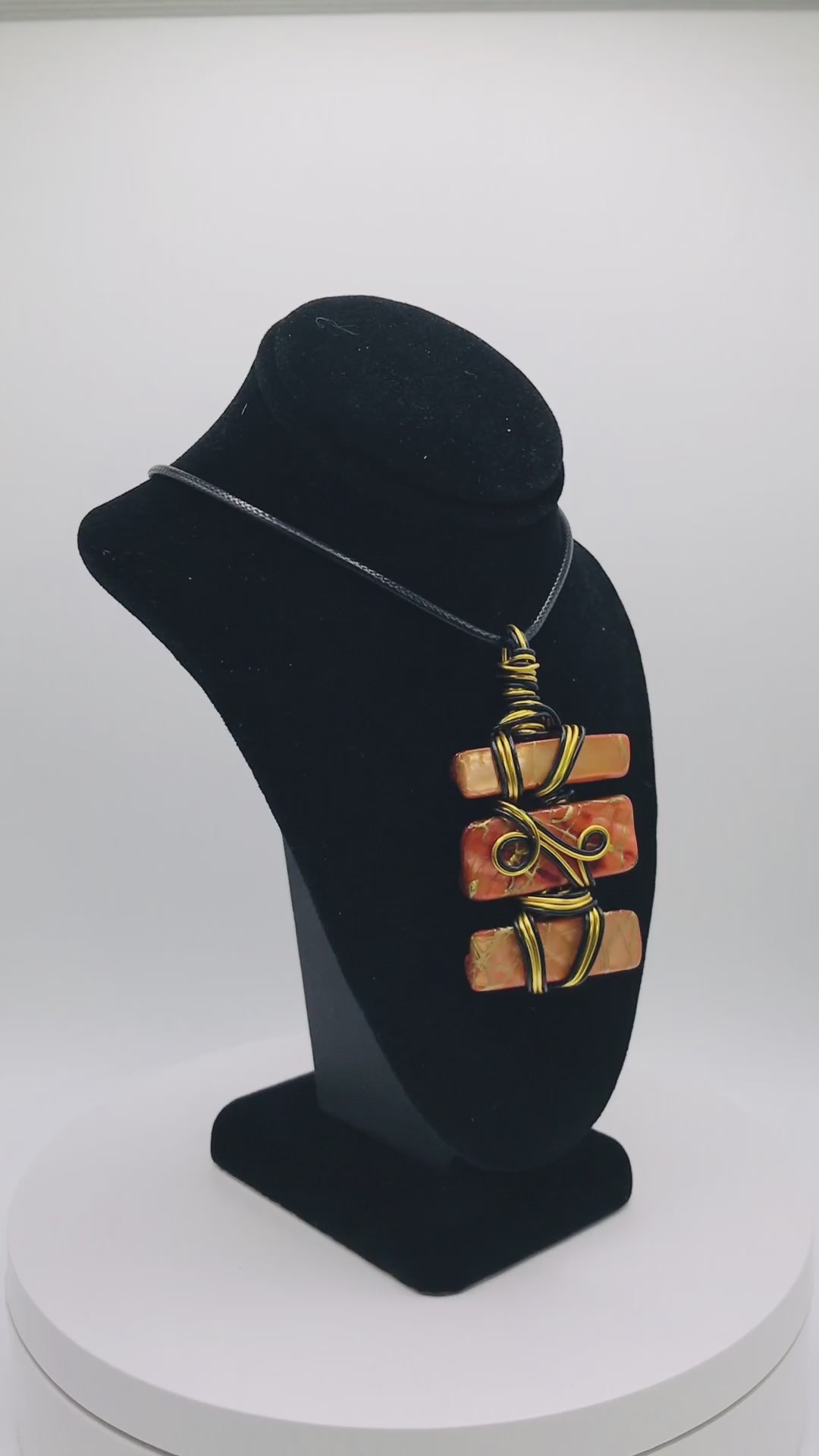 Custom Shell Multiwrap 3 Abalone Orange Tan Gold and Black Medium 1 1/2-2 inch Pendant