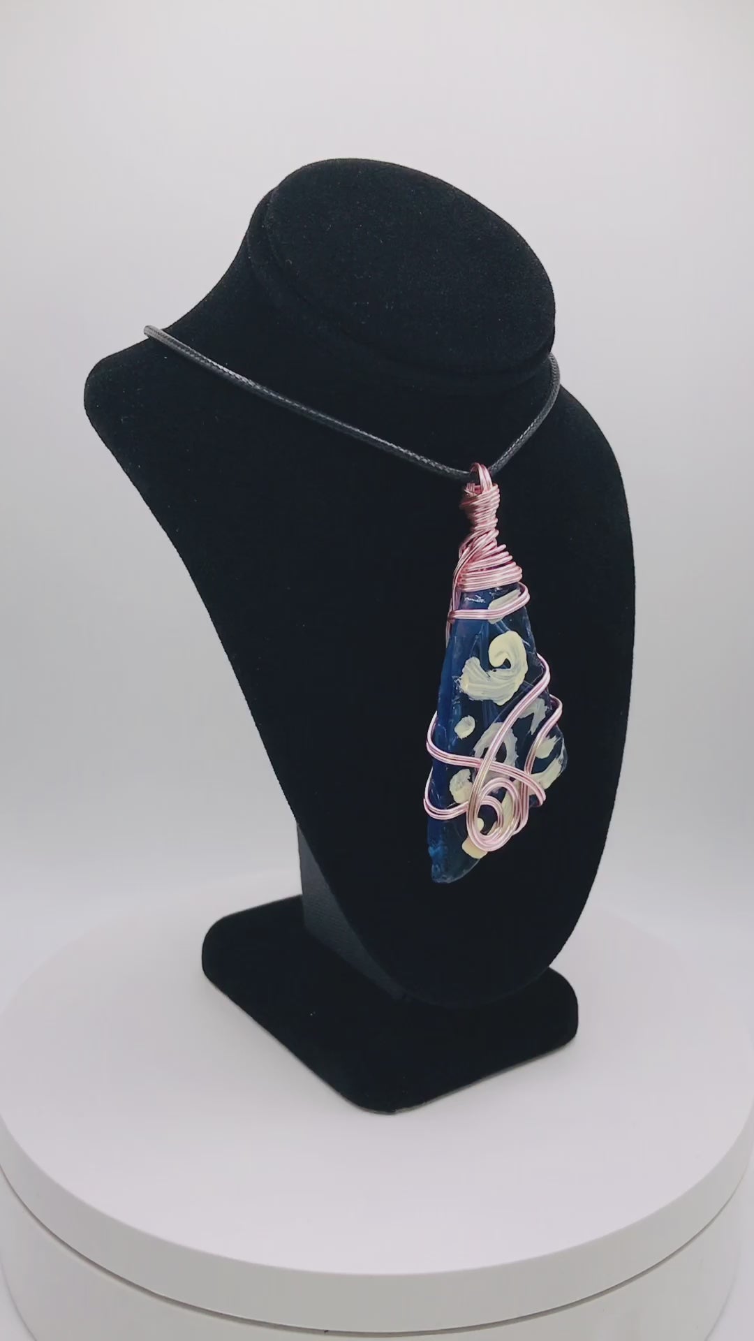 Hand Painted Limited Edition Sea Glass Blue Pink Large 2-2 1/2 inch Pendant