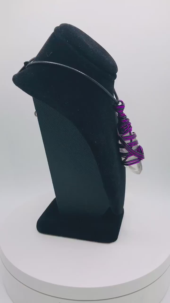 Quartz Crystal Stone Clear Black and Purple Medium 1 1/2-2 inch Pendant