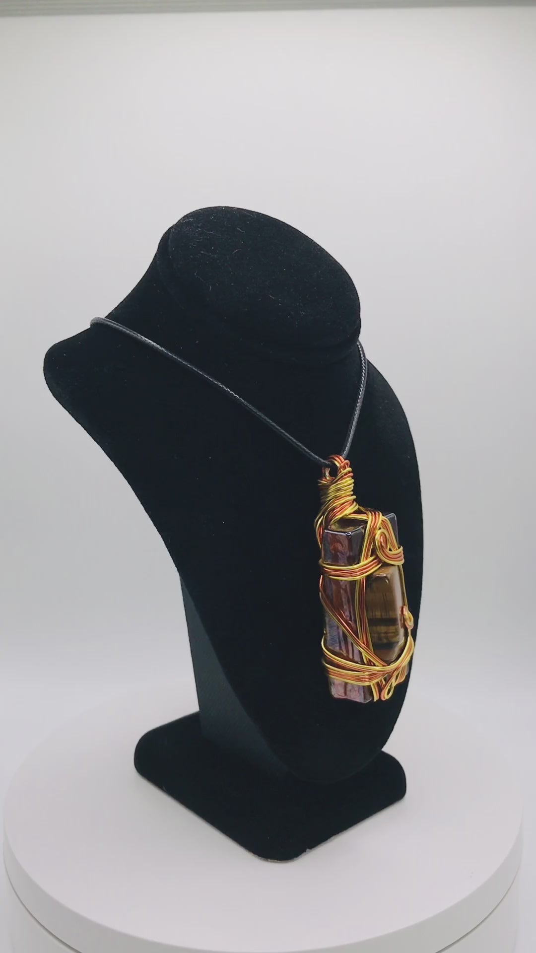 Rock & Glass Amber Tiger Eye Brown Orange Gold Medium 1 1/2-2 inch Pendant