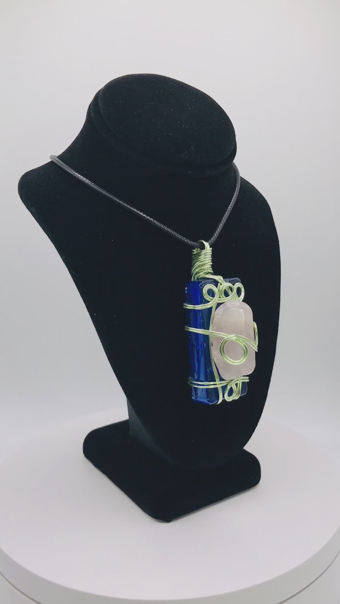 Rock & Glass Rose Quartz Pink Blue & Light Green Medium 1 1/2-2 inch Pendant