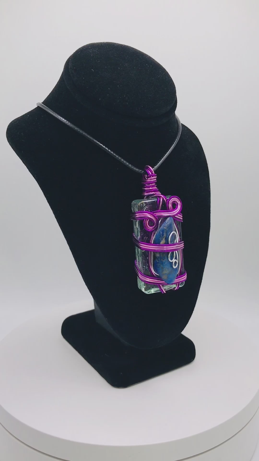 Rock & Glass Sodalite Blue Pink Purple and Silver Medium 1 1/2-2 inch Pendant