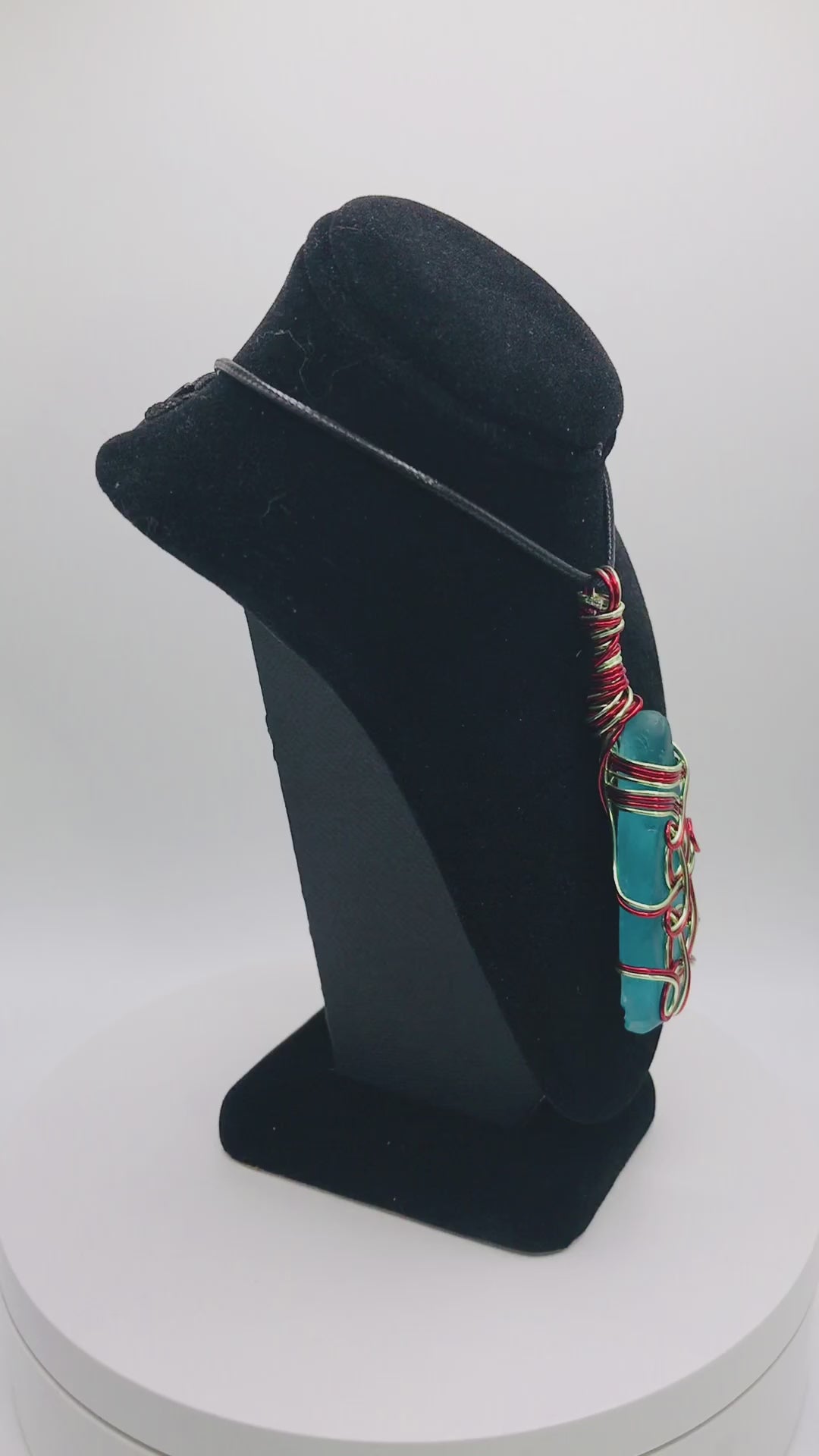 Sea Glass Aqua Blue Red and Light Green Large 2-2 1/2 inch Pendant
