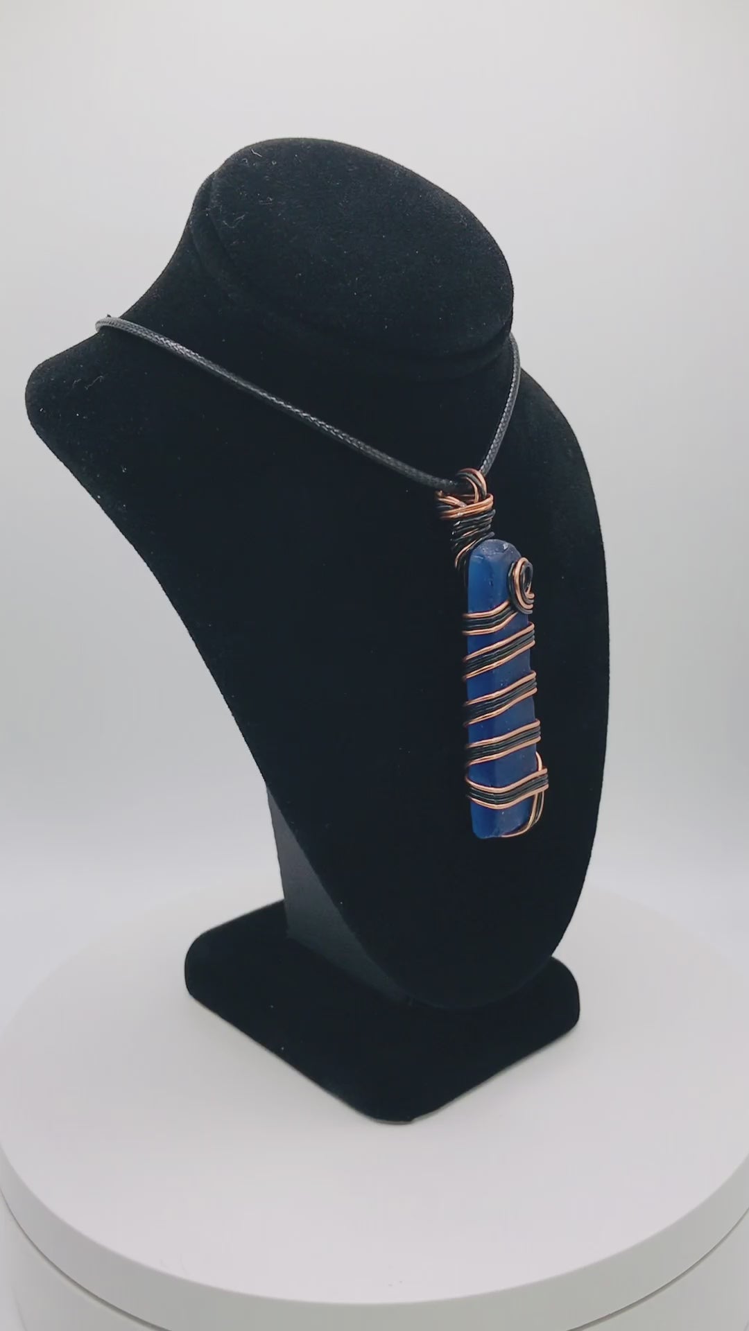 Sea Glass Blue Black and Copper Medium 1 1/2-2 inch Pendant