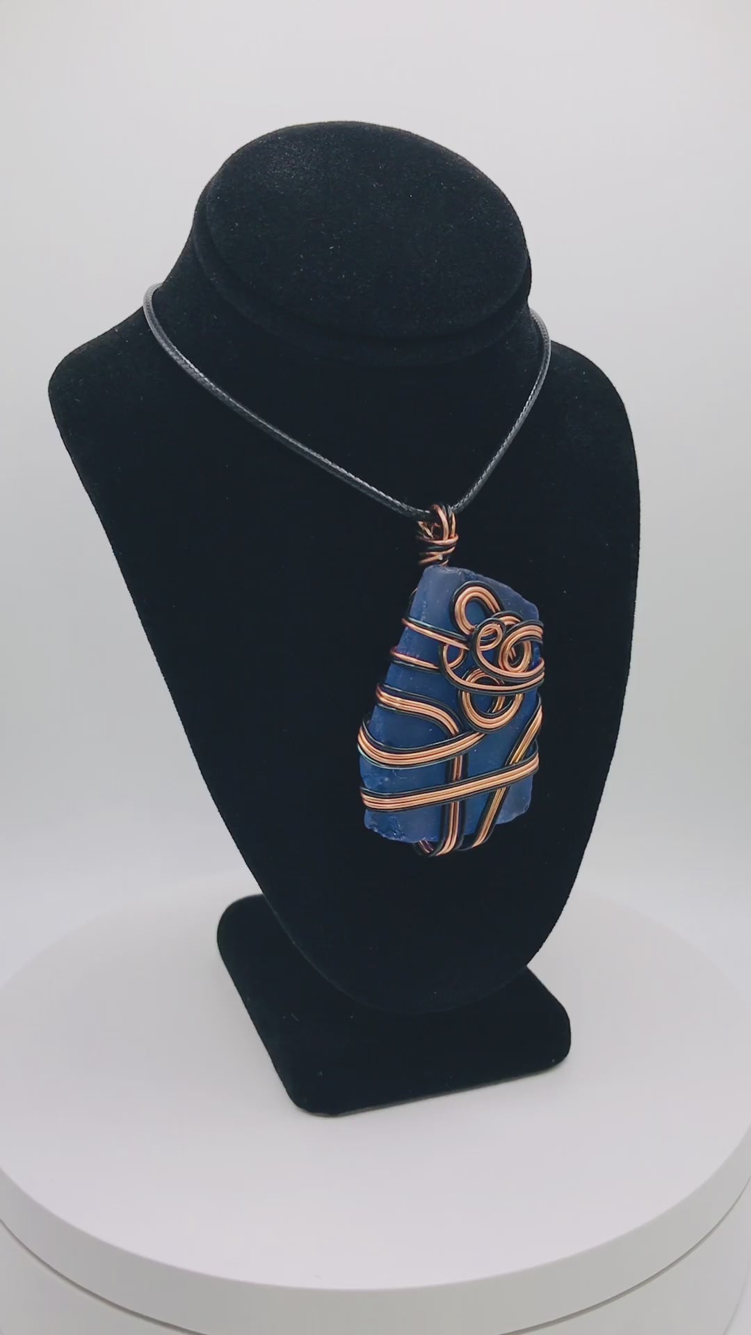 Sea Glass Blue Copper and Black Medium 1 1/2-2 inch Pendant