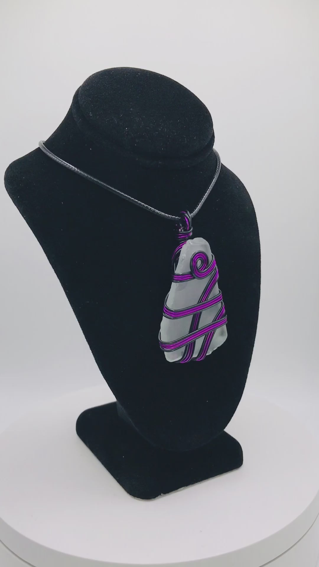 Sea Glass Clear Purple and Black Medium 1 1/2-2 inch Pendant