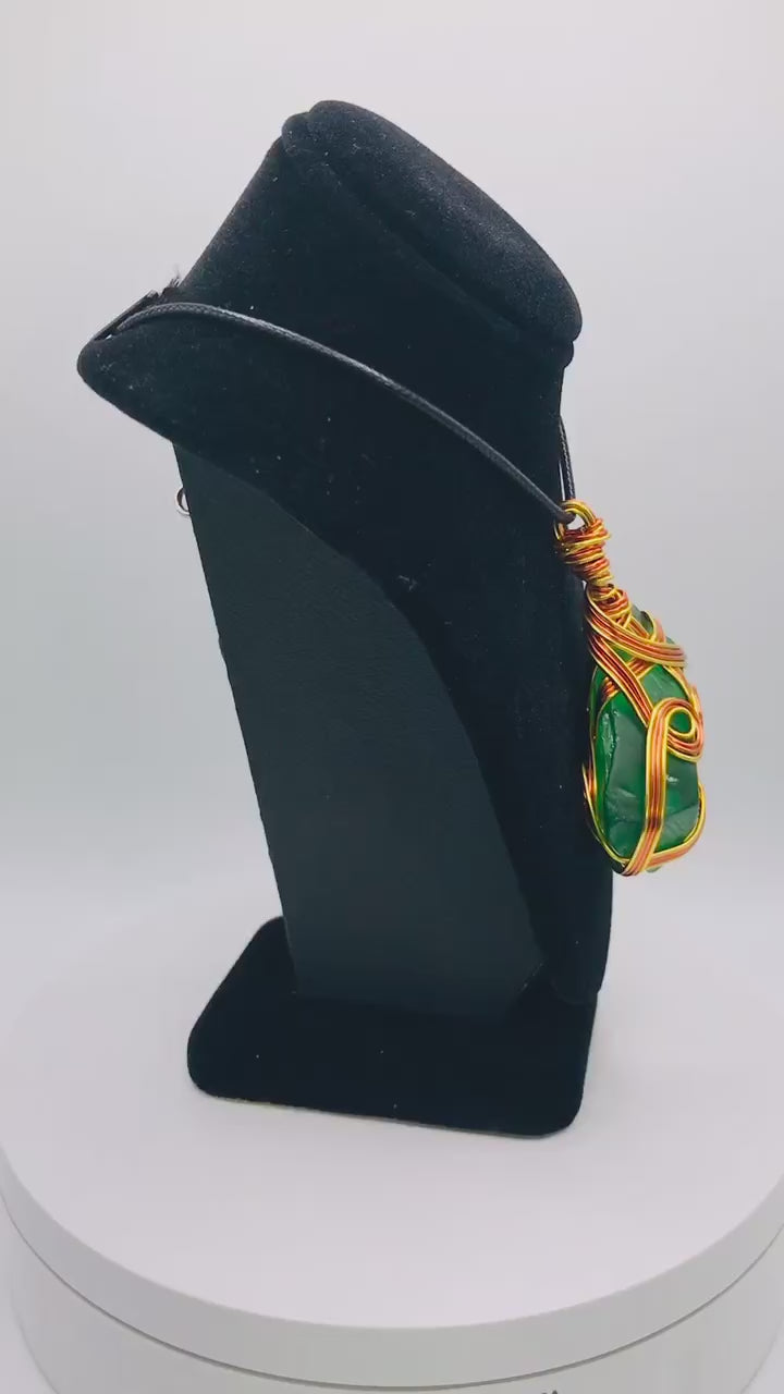 Sea Glass Emerald Green Orange and Gold Large 2-2 1/2 inch Pendant