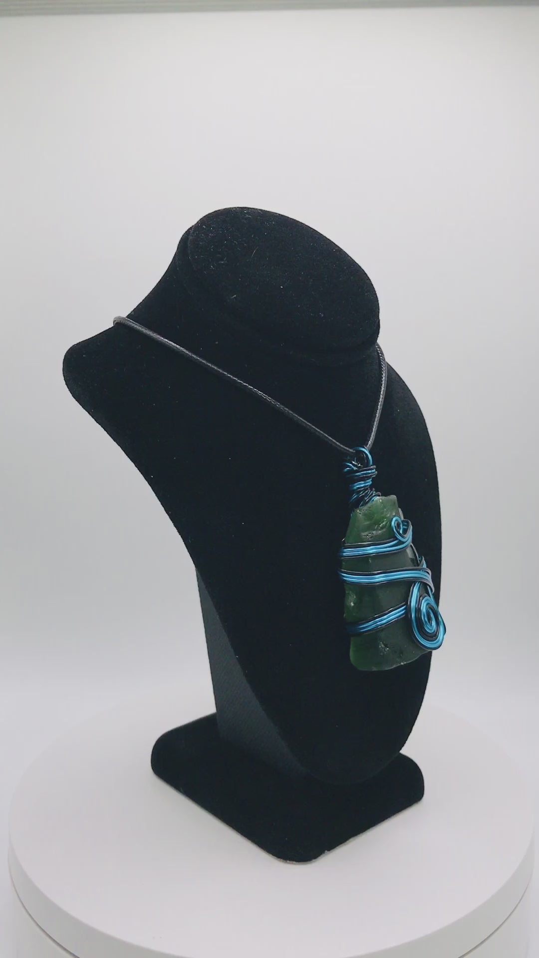 Sea Glass Emerald Green Sky Blue and Black Medium 1 1/2-2 inch Pendant