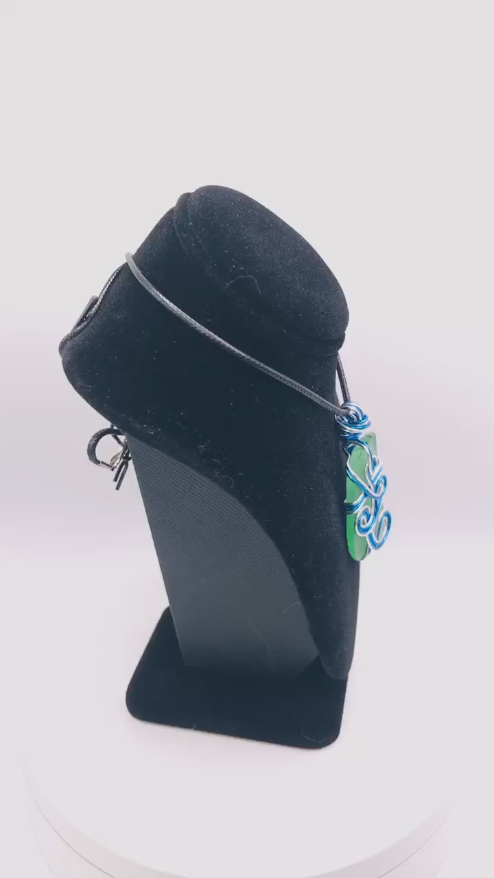 Sea Glass Green Blue and Silver Medium 1 1/2-2 inch Pendant