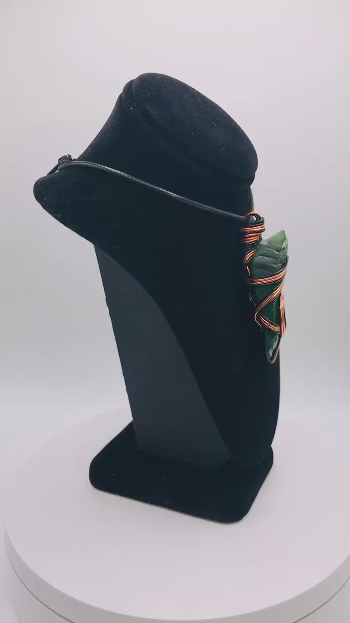 Sea Glass Green Copper and Black Medium 1 1/2-2 inch Pendant