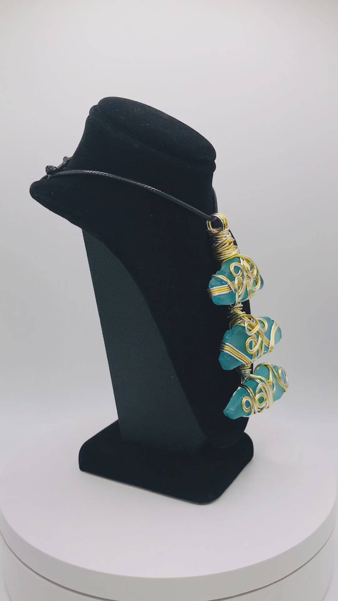 Sea Glass Multiwrap 3 Aqua Blue Gold and Silver Extra Large 2 1/2 + inch Pendant