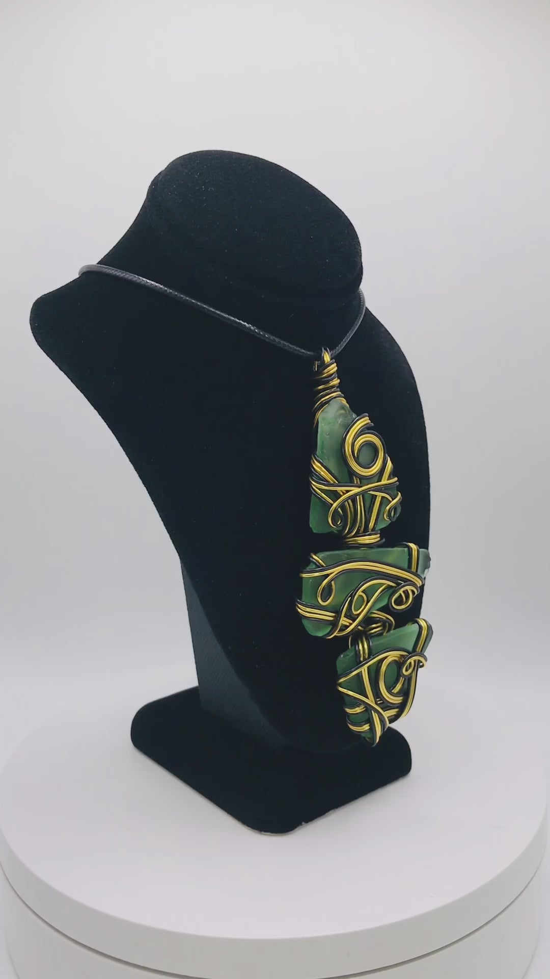 Sea Glass Multiwrap 3 Green Gold and Black Extra Large 2 1/2 + inch Pendant