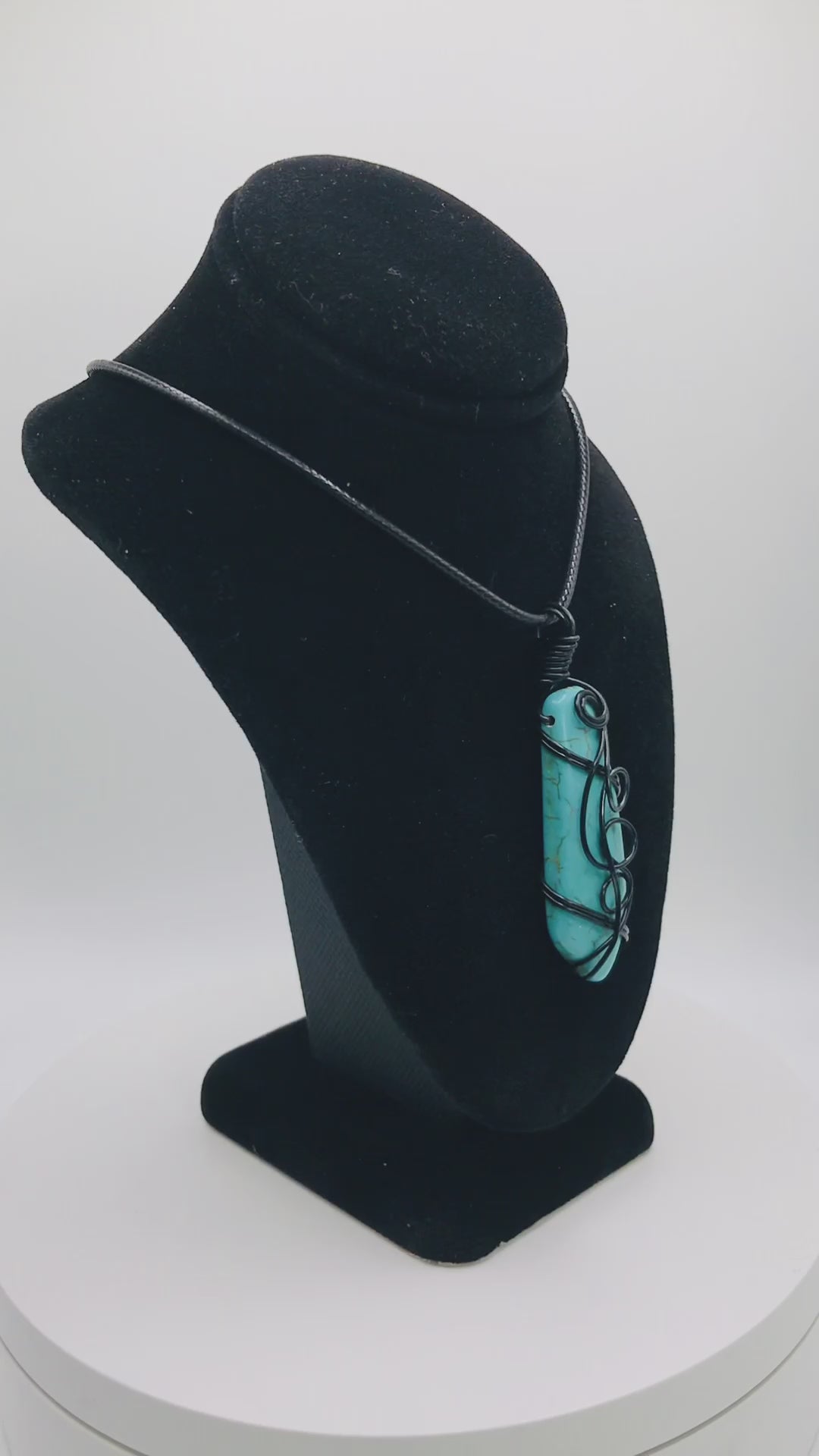 Turquoise Howlite Stone Black Medium 1 1/2-2 inch Pendant