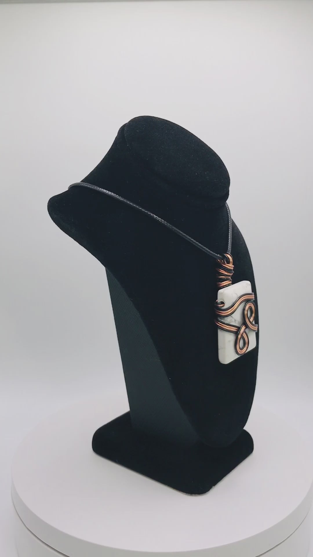 White Howlite Stone Copper and Black Medium 1 1/2-2 inch Pendant